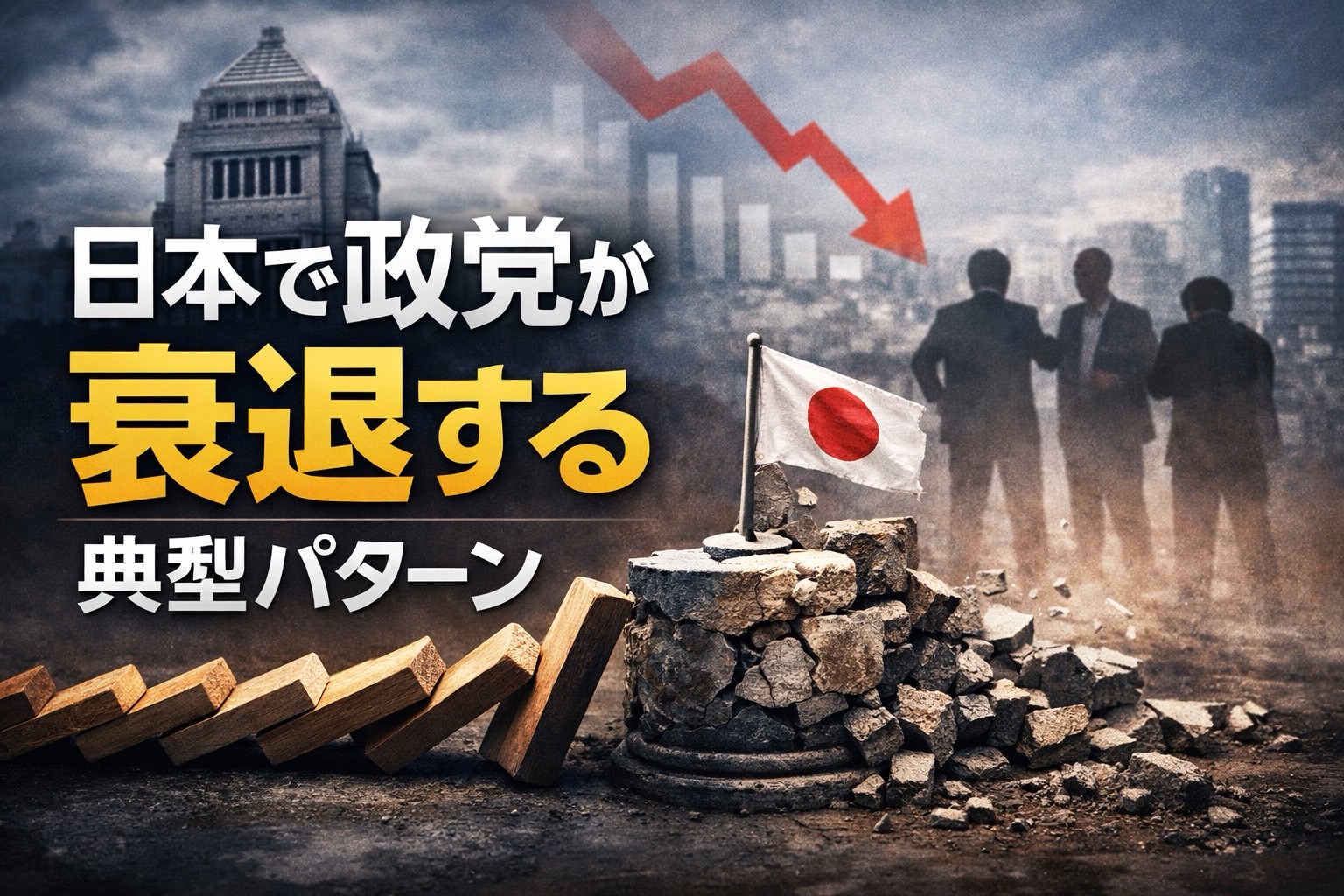 日本における政党の衰退は、誰かに排除された結果ではなく、 有権者が「任せられない」と判断した積み重ねによって起こります。