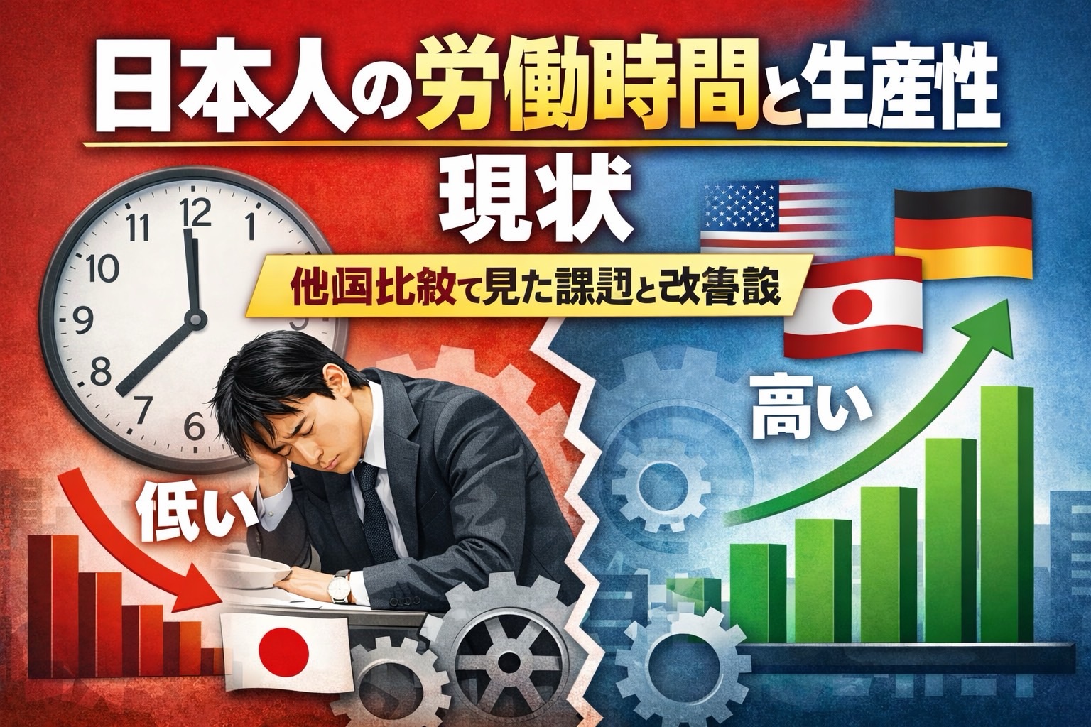 今後は、労働時間の長さではなく、どれだけ価値を生み出せるかを重視する社会への転換が不可欠です。 デジタル化、人材育成、評価制度改革を通じて、持続可能な成長モデルを構築していくことが求められています。
