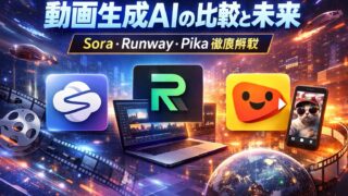 動画生成AI「Sora・Runway・Pika」を徹底比較。特徴・違い・今後の市場予測までわかりやすく解説。AI動画時代の必須知識を網羅。