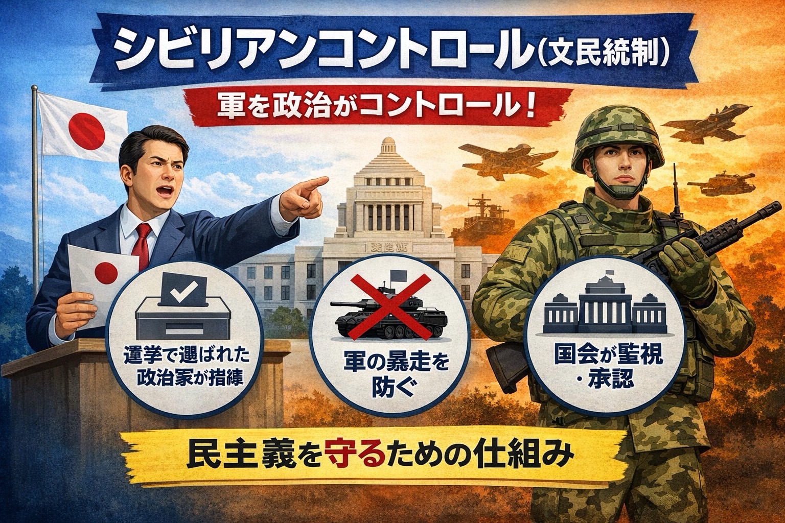 シビリアンコントロールとは、軍事力を政治が統制することで国家の安全と民主主義を守る仕組みです。 現代国家においては不可欠な制度であり、日本でも厳格に運用されています。