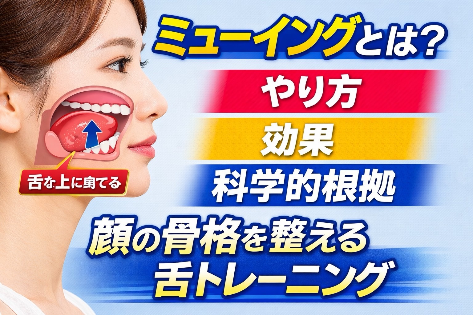 近年、SNSや健康分野で注目されている「ミューイング(Mewing)」という言葉をご存じでしょうか。 ミューイングとは、舌の位置を正しく保つことで顎や顔の骨格を整えることを目指すトレーニング方法です。