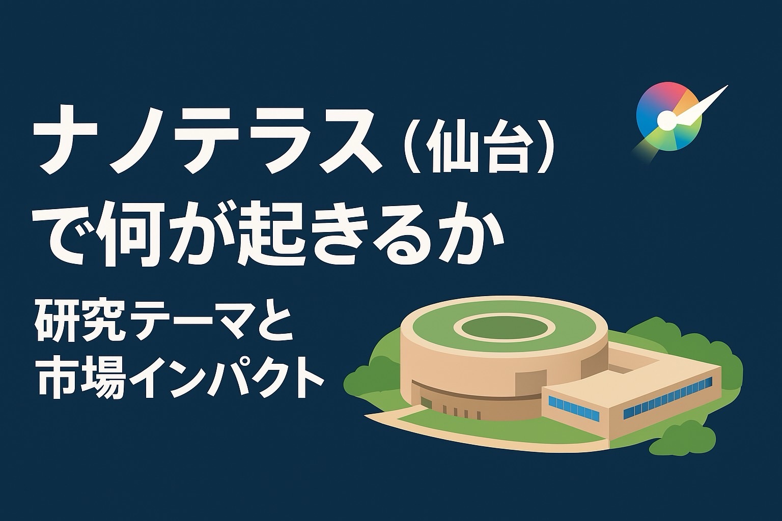 仙台(東北大学青葉山周辺)に整備された次世代放射光施設「ナノテラス(NanoTerasu)」は、極めて高輝度の放射光を用いて物質をナノスケールで可視化・解析できる研究インフラです。本記事では、ナノテラスが今後注力すると予想される主要研究テーマと、それぞれの分野で期待される市場インパクトを分かりやすくまとめます。