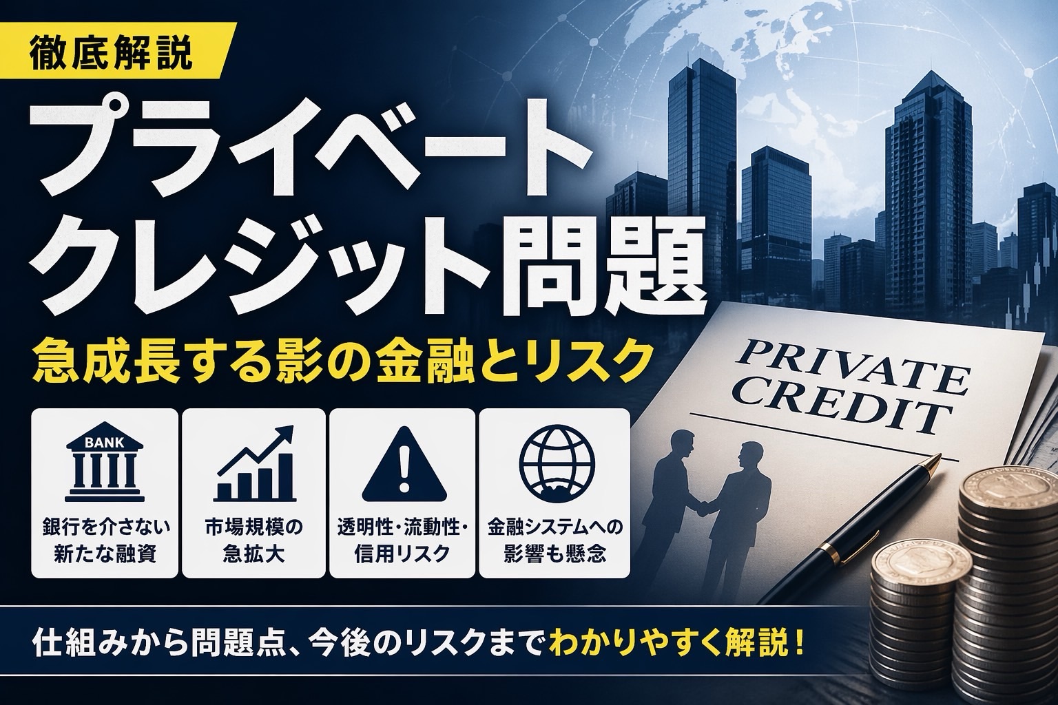 近年、金融市場で急速に存在感を高めている「プライベートクレジット(Private Credit)」。 銀行を介さない資金供給として注目される一方で、「新たな金融リスクではないか?」という懸念も広がっています。 本記事では、プライベートクレジットの仕組みから問題点、今後の展望までを体系的に解説します。