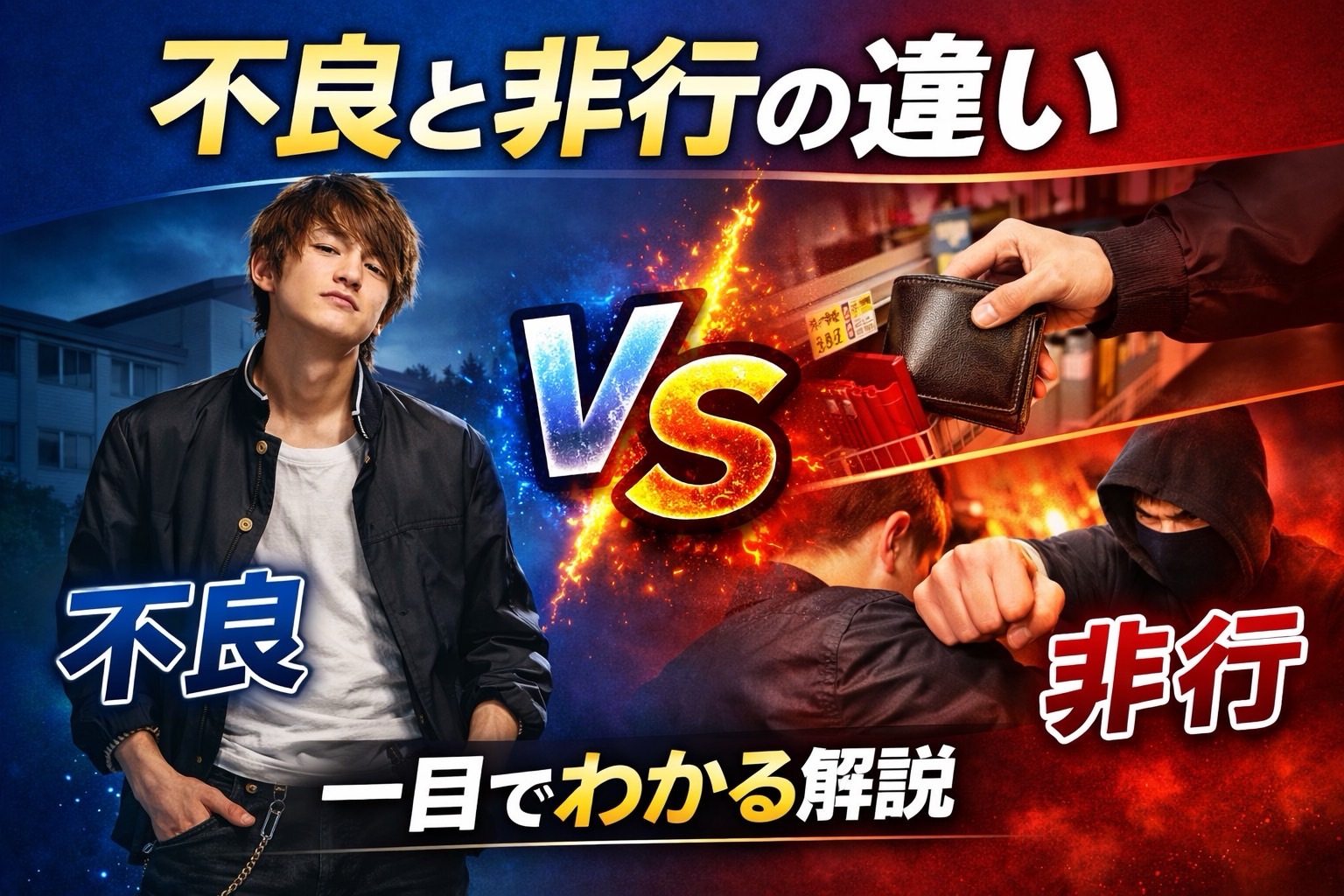 「不良」と「非行」は似たような意味で使われがちですが、実は明確な違いがあります。本記事では、それぞれの意味や具体例、そして両者の関係性についてわかりやすく解説します。