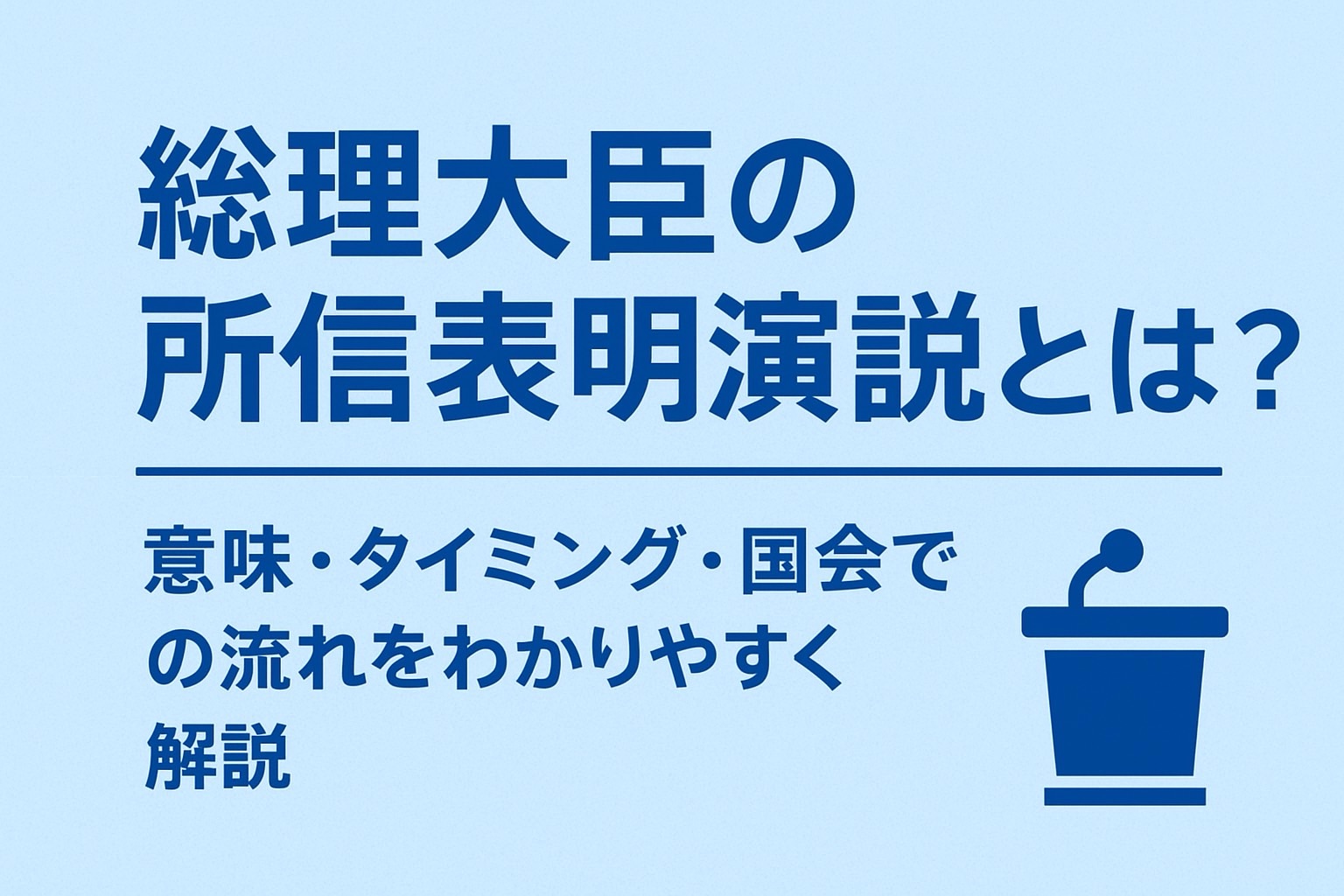 所信表明演説は、新内閣や国会開会時に行われる「政府の方針表明」の場で、国政運営の基本姿勢や優先課題を国会と国民に示す重要な演説です。演説後は代表質問や法案審議へとつながり、実際の政策実行に影響します。