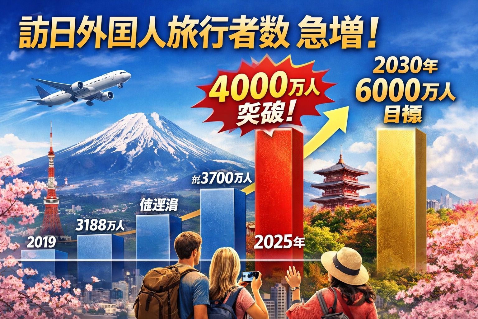 2025年、日本はついに 訪日外国人旅行者数が約4,270万人に達し、過去最高を更新しました。これは2024年の約3,687万人を大きく上回る結果です。