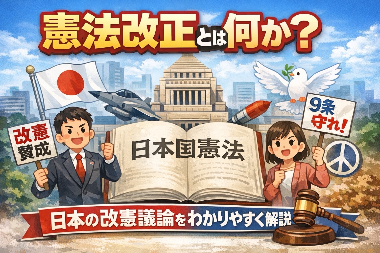 日本では長年にわたり「憲法改正(改憲)」が政治の大きなテーマとなっています。しかし、ニュースでは頻繁に取り上げられるものの、「具体的に何を変えるのか」「なぜ議論されているのか」が分かりにくいと感じる人も多いでしょう。