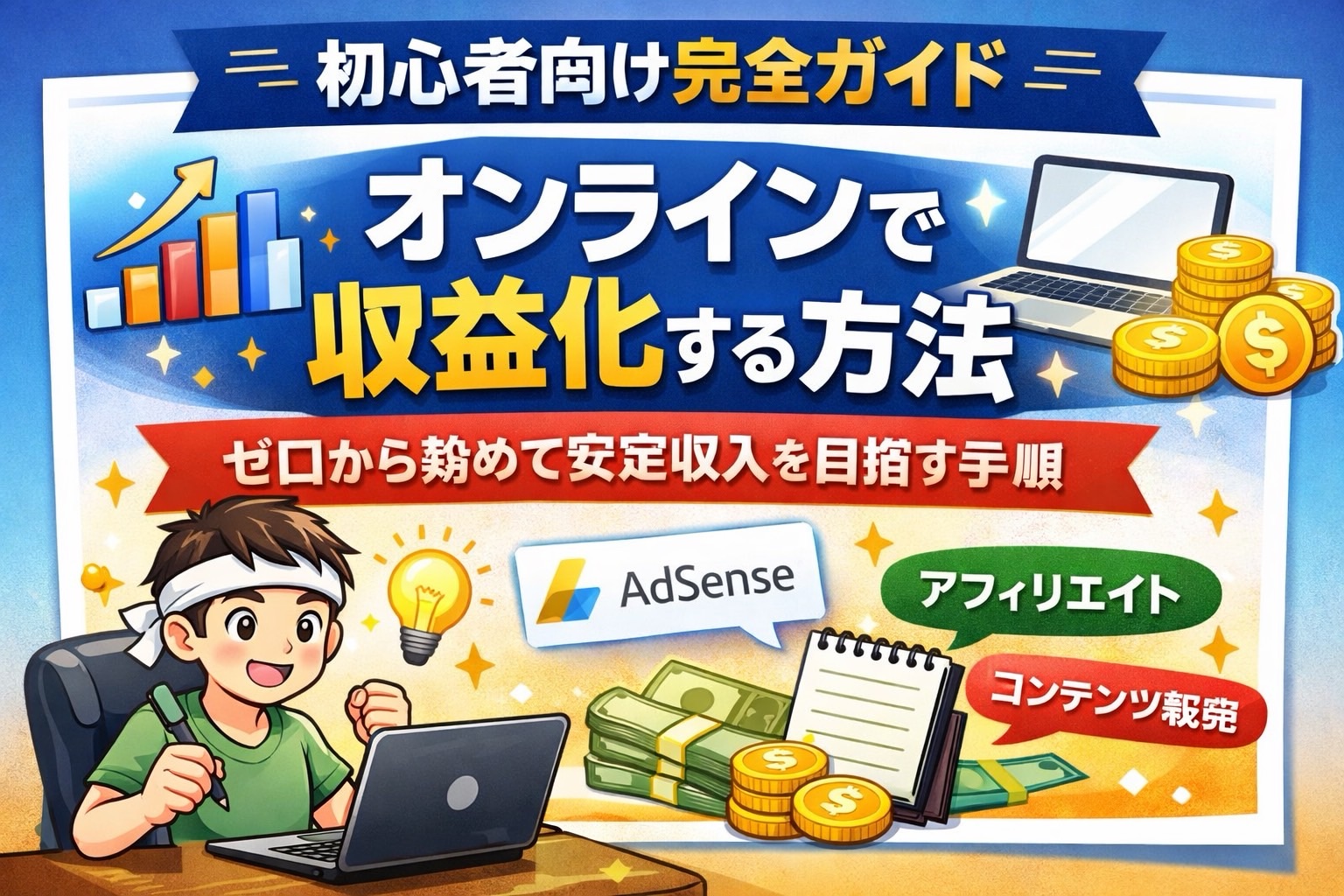 そんな初心者の方に向けて、本記事ではスキル・実績ゼロからでも始められるオンライン収益化の方法を、仕組み・具体例・注意点まで含めて詳しく解説します。