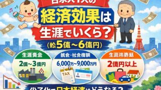 経済・金融 日本人1人が生まれてから亡くなるまでの経済効果はいくら?生涯GDP・税収・消費額を徹底解説 日本人1人が生まれてから亡くなるまでに生み出す経済効果は、概算で約5億〜6億円とも言われます。生涯賃金・税金・消費額をもとに、その内訳と少子化が日本経済に与える影響をわかりやすく解説します。 2026.03.14 経済・金融