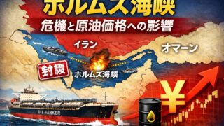 ホルムズ海峡とは何か?世界の原油輸送の約3割が通過する最重要チョークポイントの役割と、封鎖リスクが原油価格や日本経済に与える影響をわかりやすく解説します。中東情勢と投資の関係も理解できる内容です。